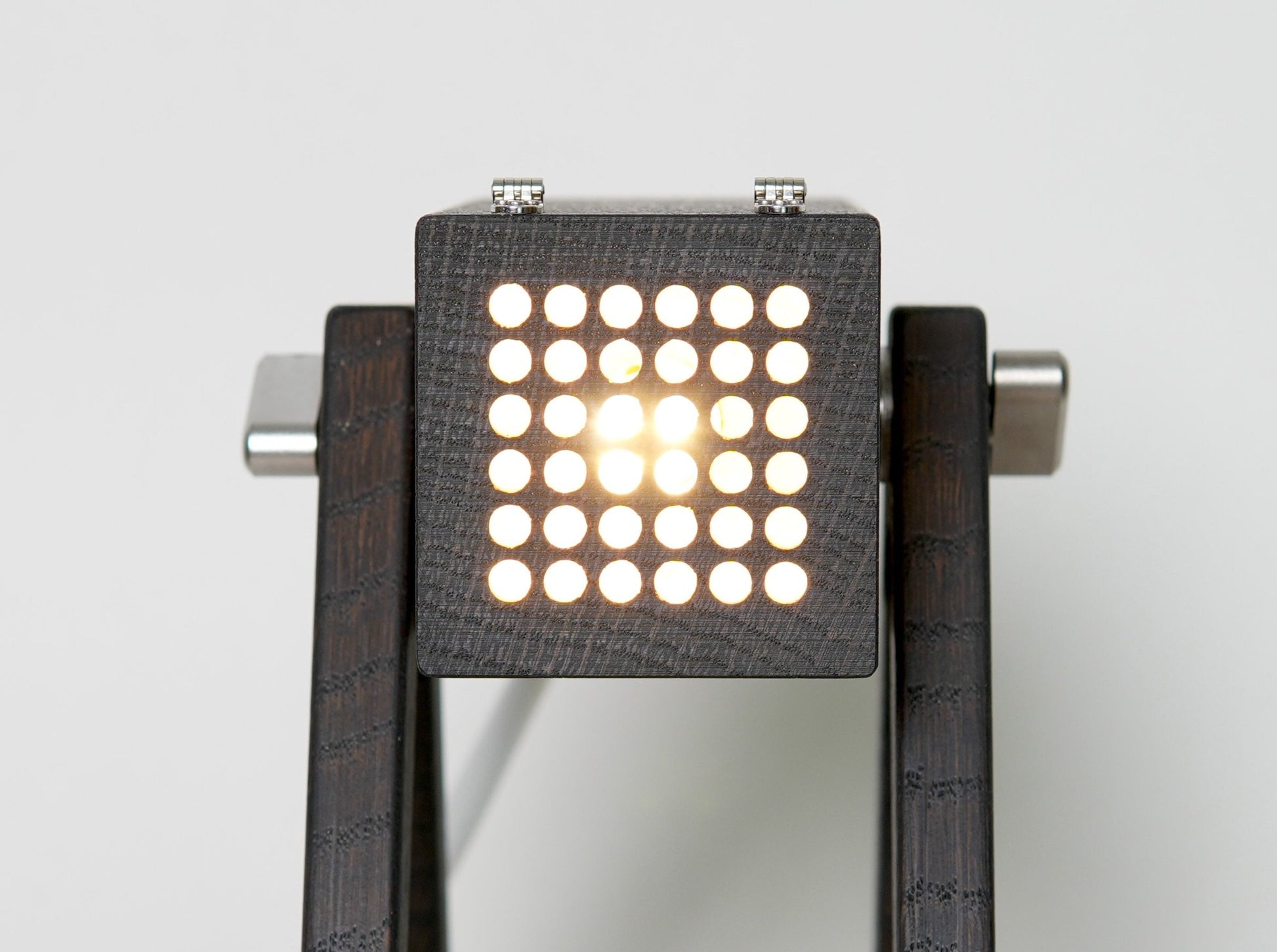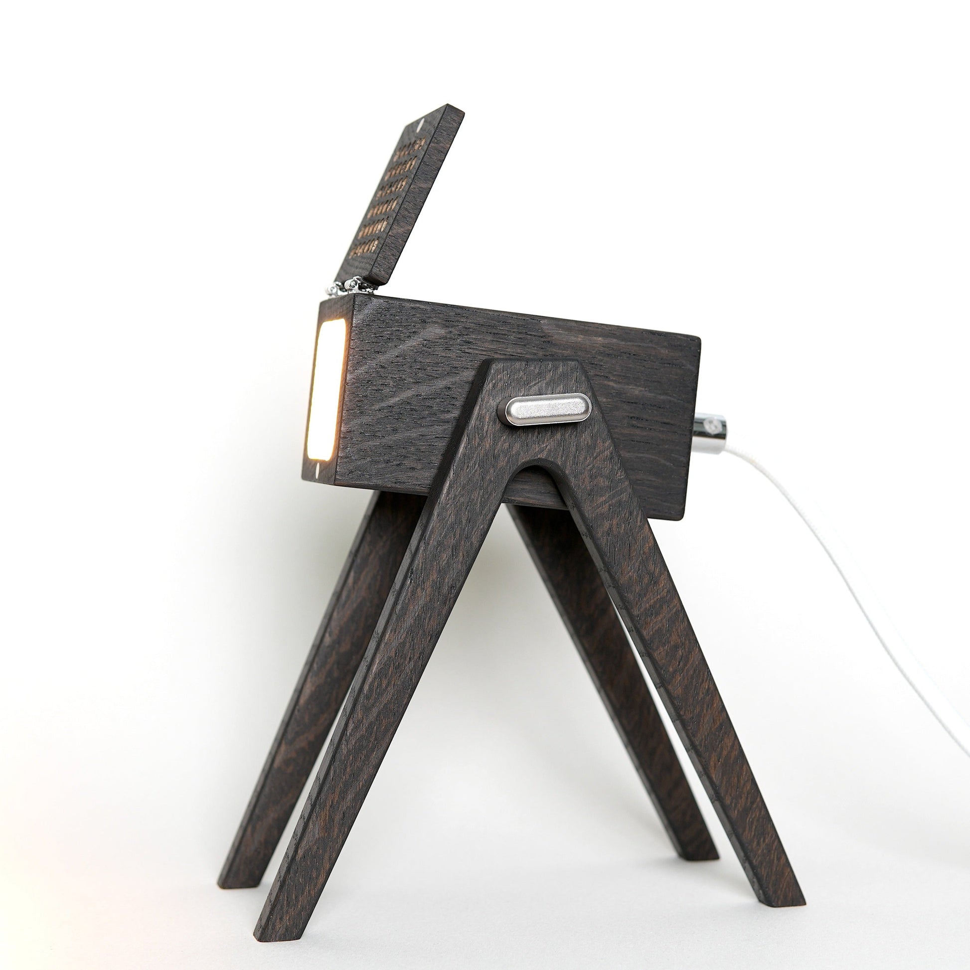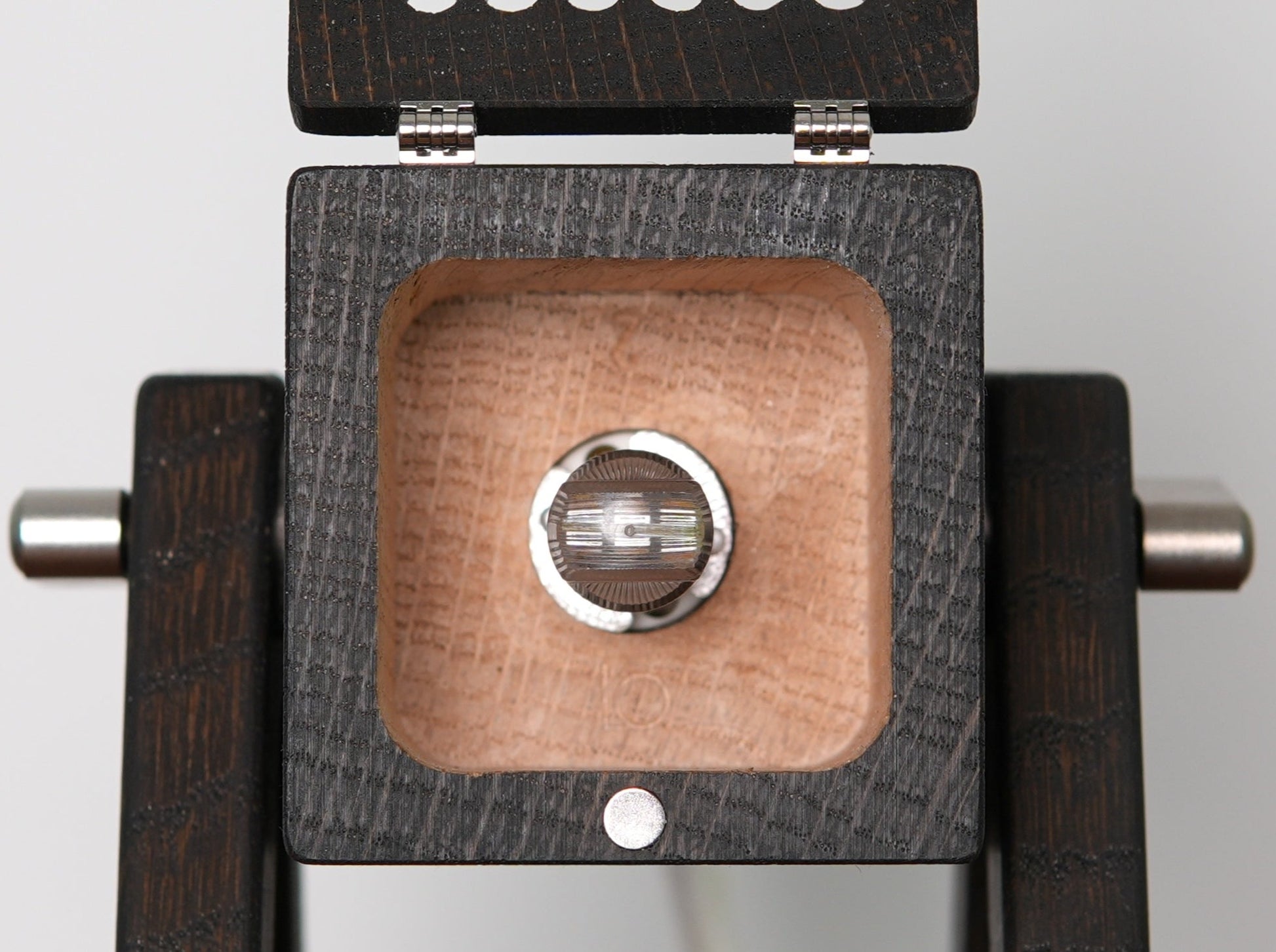 Bring mit der Geometric Tischleuchte in der Farbe "Dark Chocolate" Eleganz in Deine Räume. Die aus massivem Eichenholz gefertigte Lampe bietet dank der perforierten Klappe nicht nur funktionales Spotlicht, sondern auch stimmungsvolle Ambientebeleuchtung. Lass Dich von ihrem handgeölten Finish verzaubern.