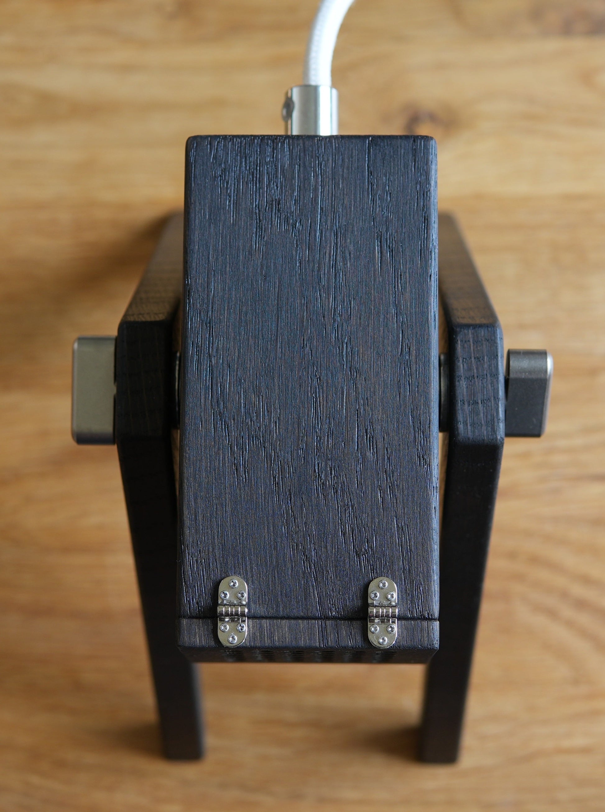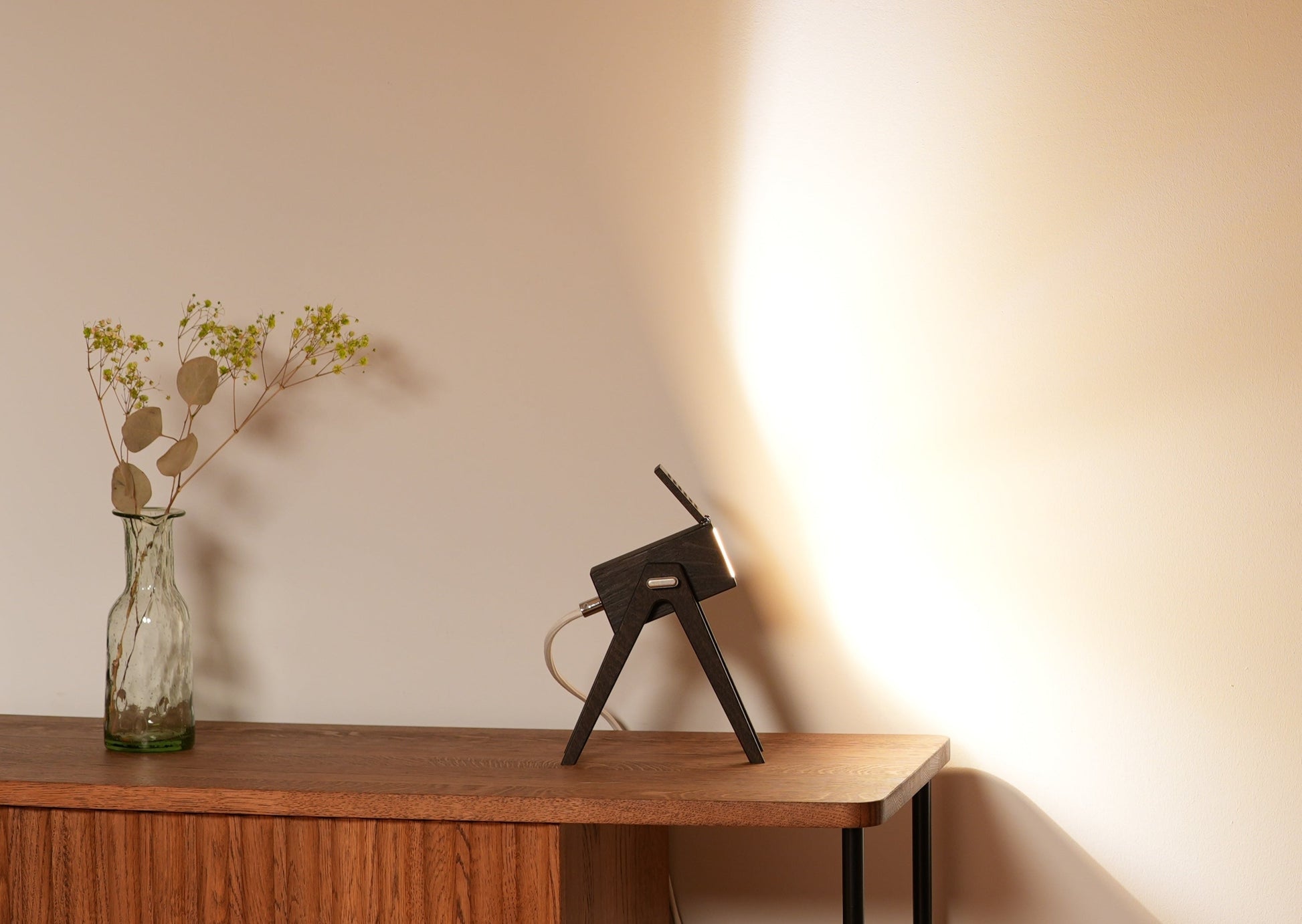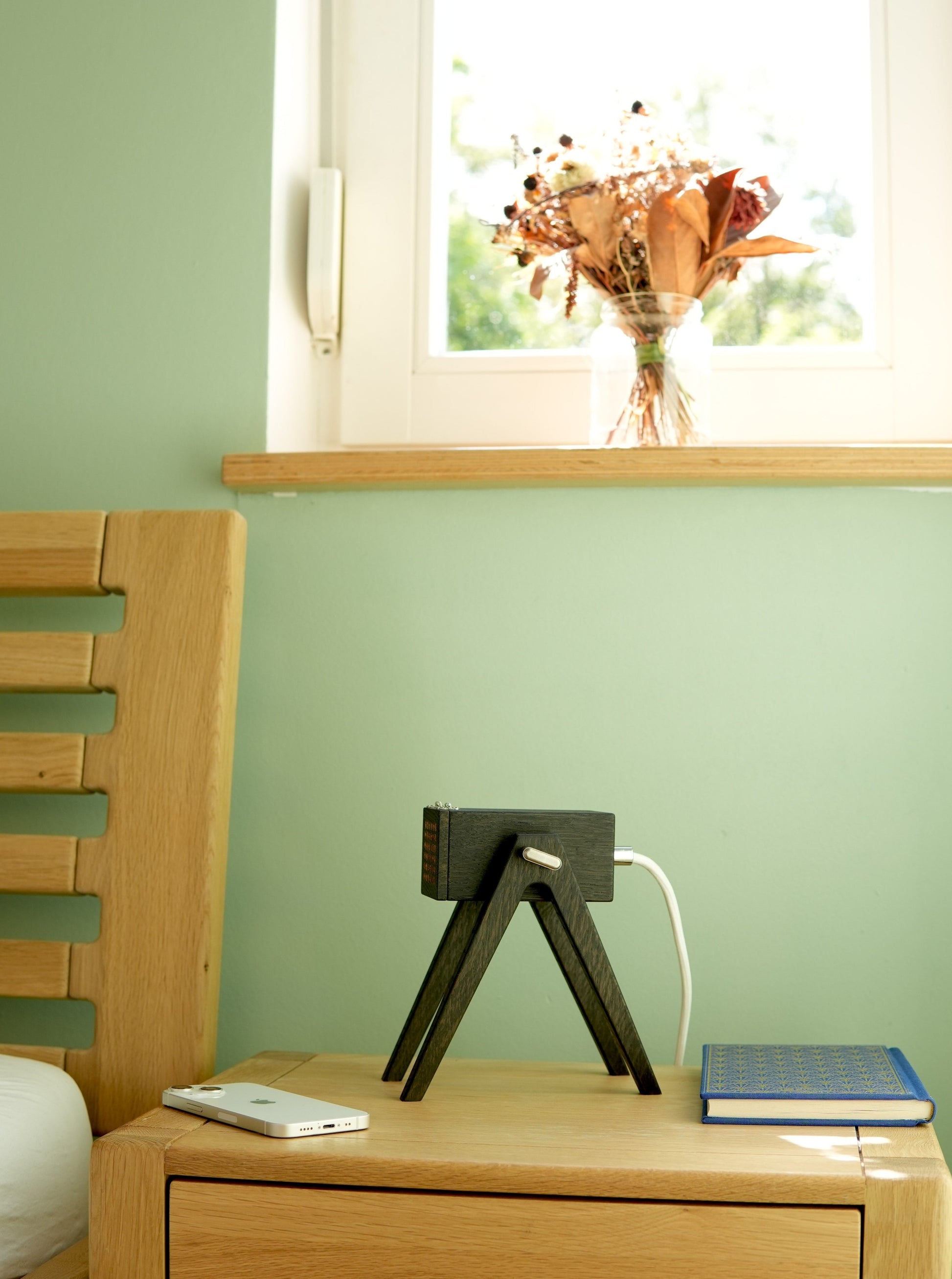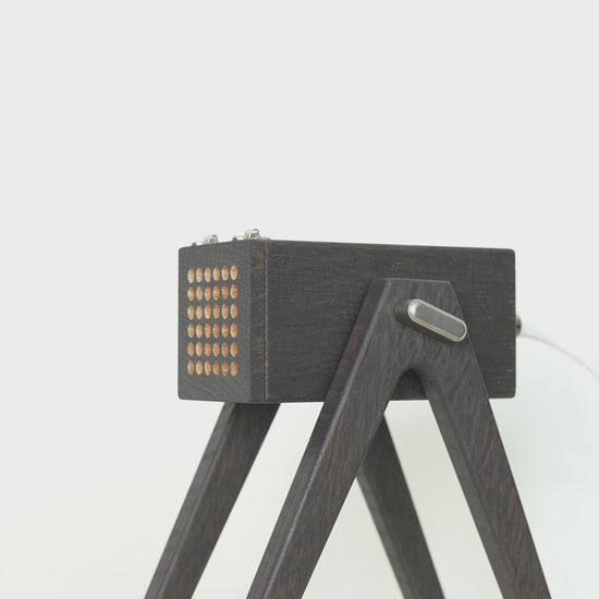 Bring mit der Geometric Tischleuchte in der Farbe "Dark Chocolate" Eleganz in Deine Räume. Die aus massivem Eichenholz gefertigte Lampe bietet dank der perforierten Klappe nicht nur funktionales Spotlicht, sondern auch stimmungsvolle Ambientebeleuchtung. Lass Dich von ihrem handgeölten Finish verzaubern.