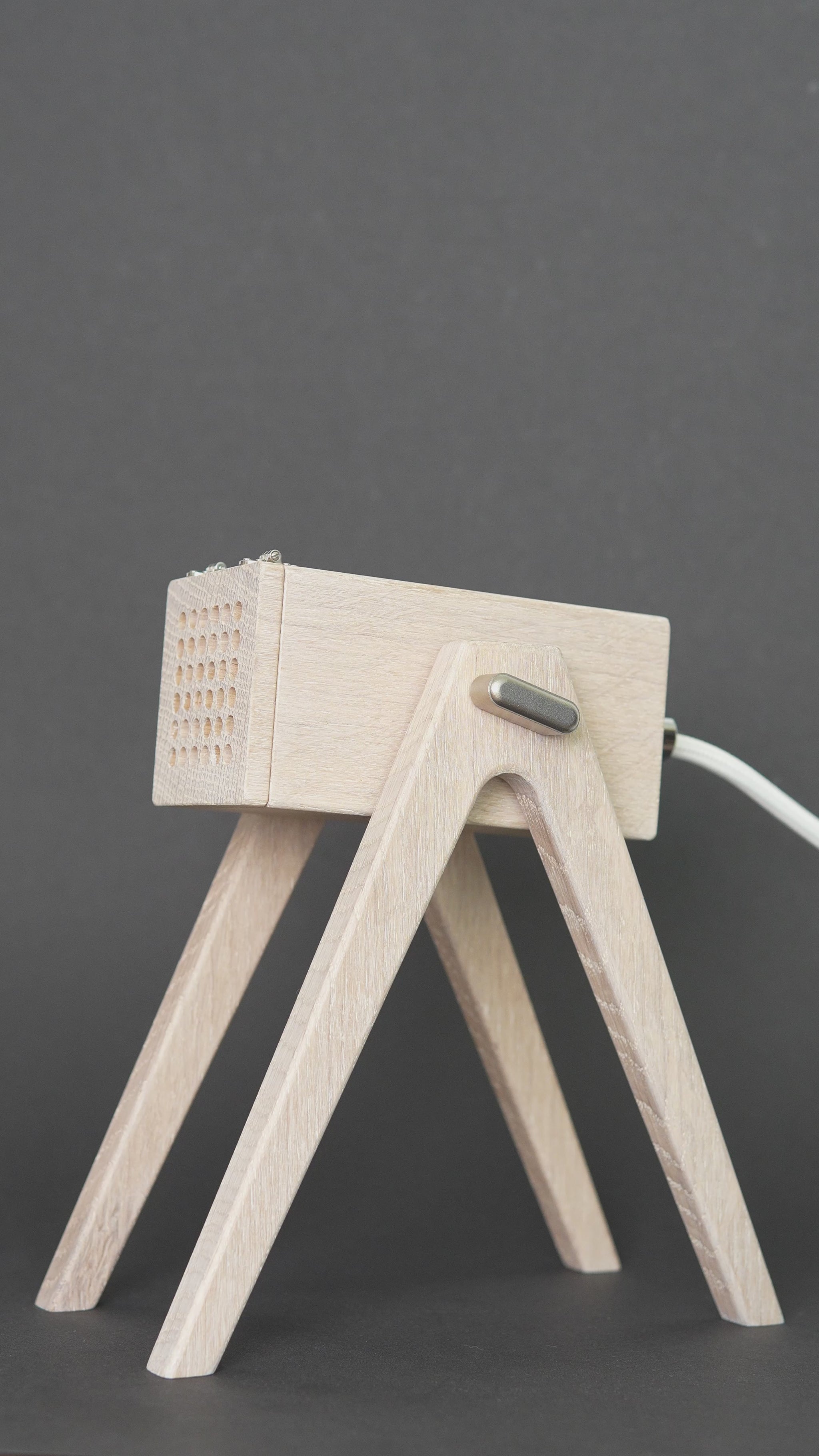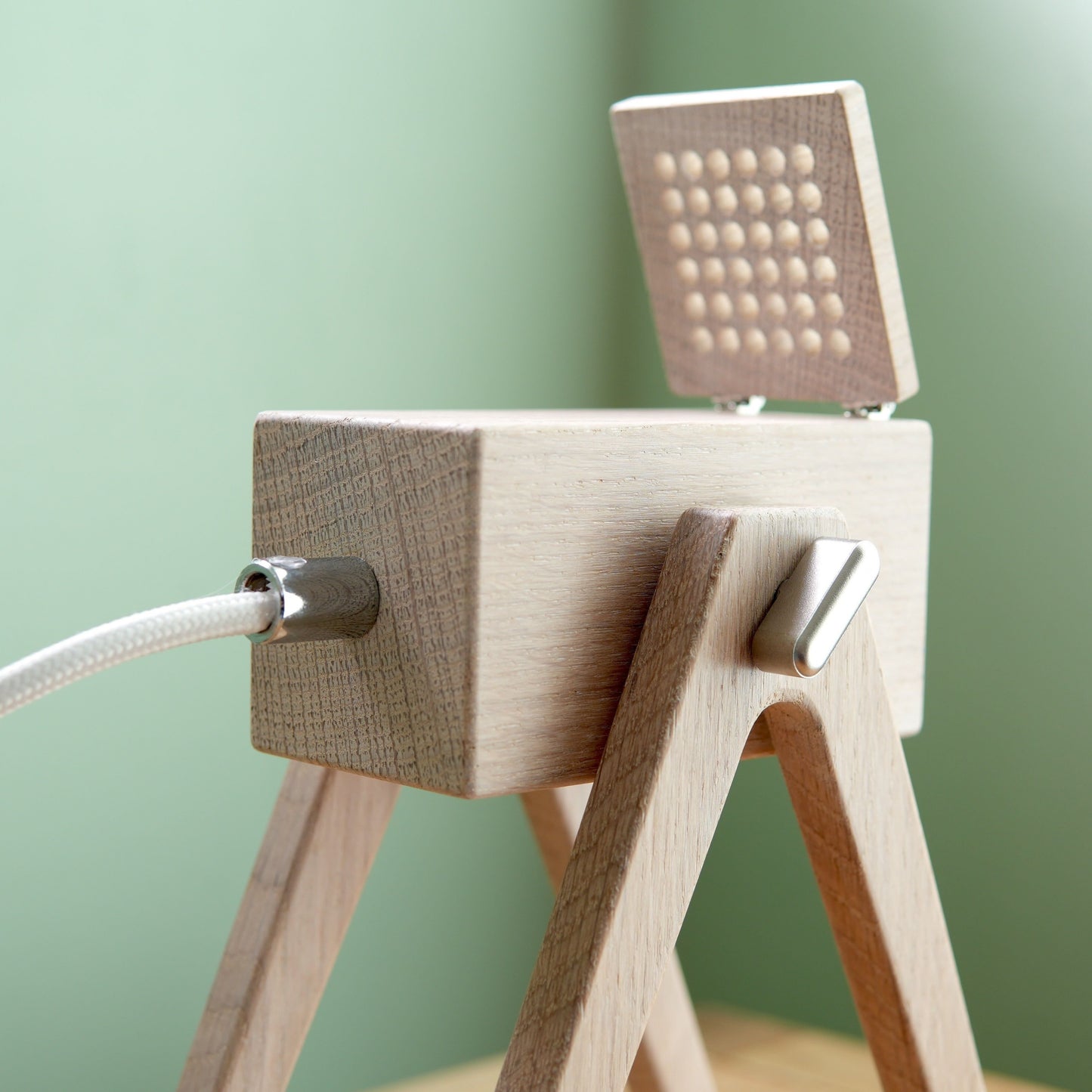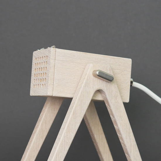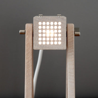 Bring mit der Geometric Tischleuchte in der Farbe "White Chocolate" Eleganz in Deine Räume. Die aus massivem Eichenholz gefertigte Lampe bietet dank der perforierten Klappe nicht nur funktionales Spotlicht, sondern auch stimmungsvolle Ambientebeleuchtung. Lass Dich von ihrem handgeölten Finish verzaubern.