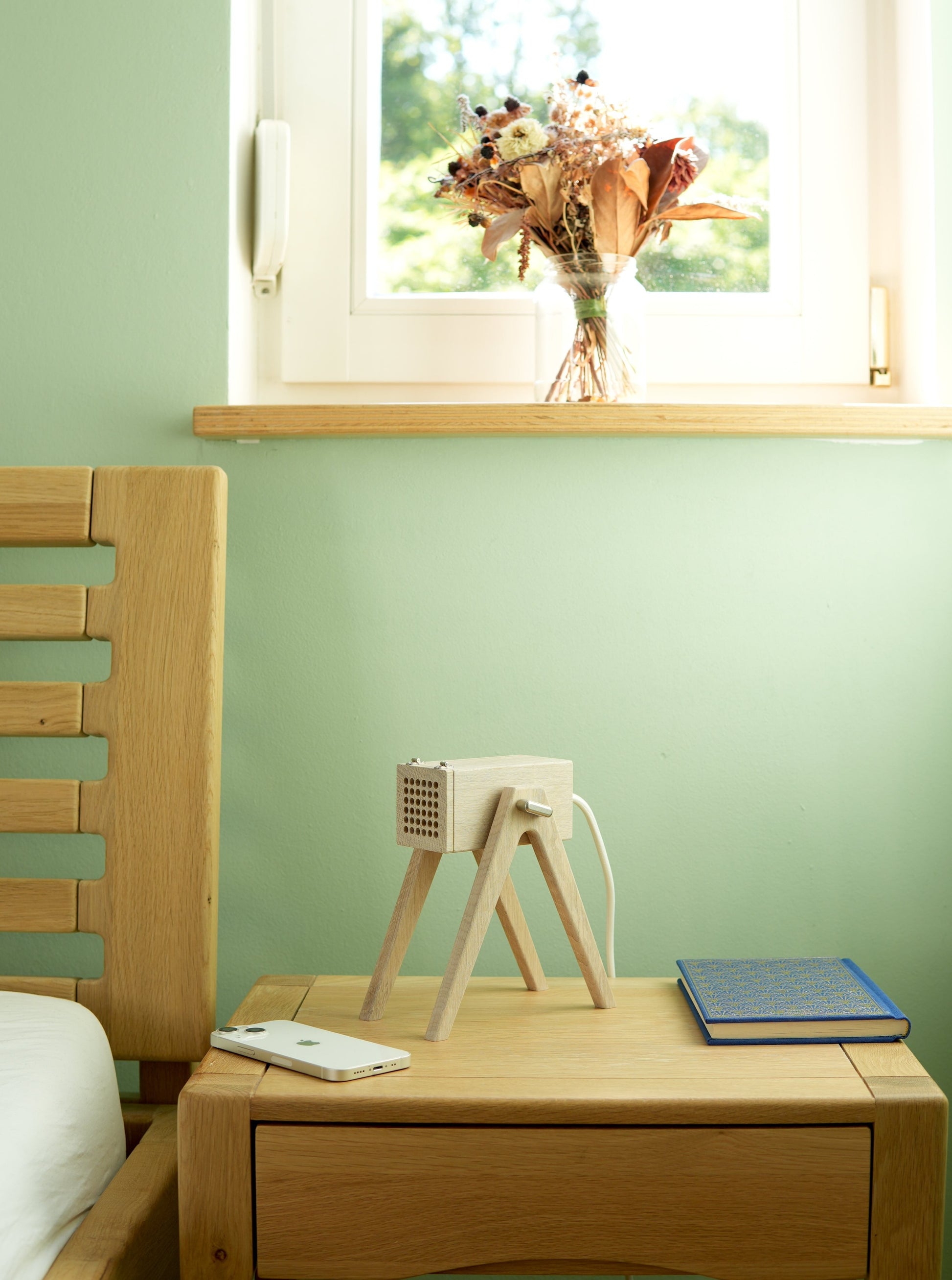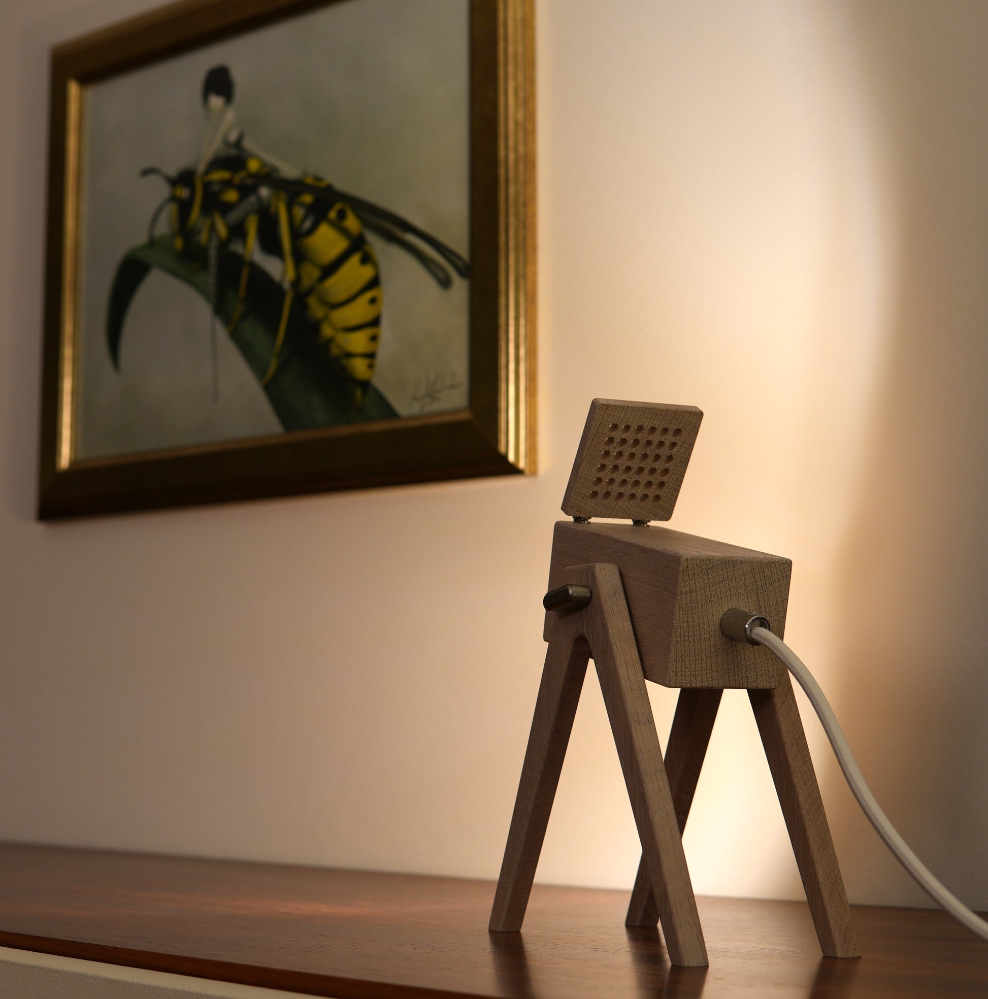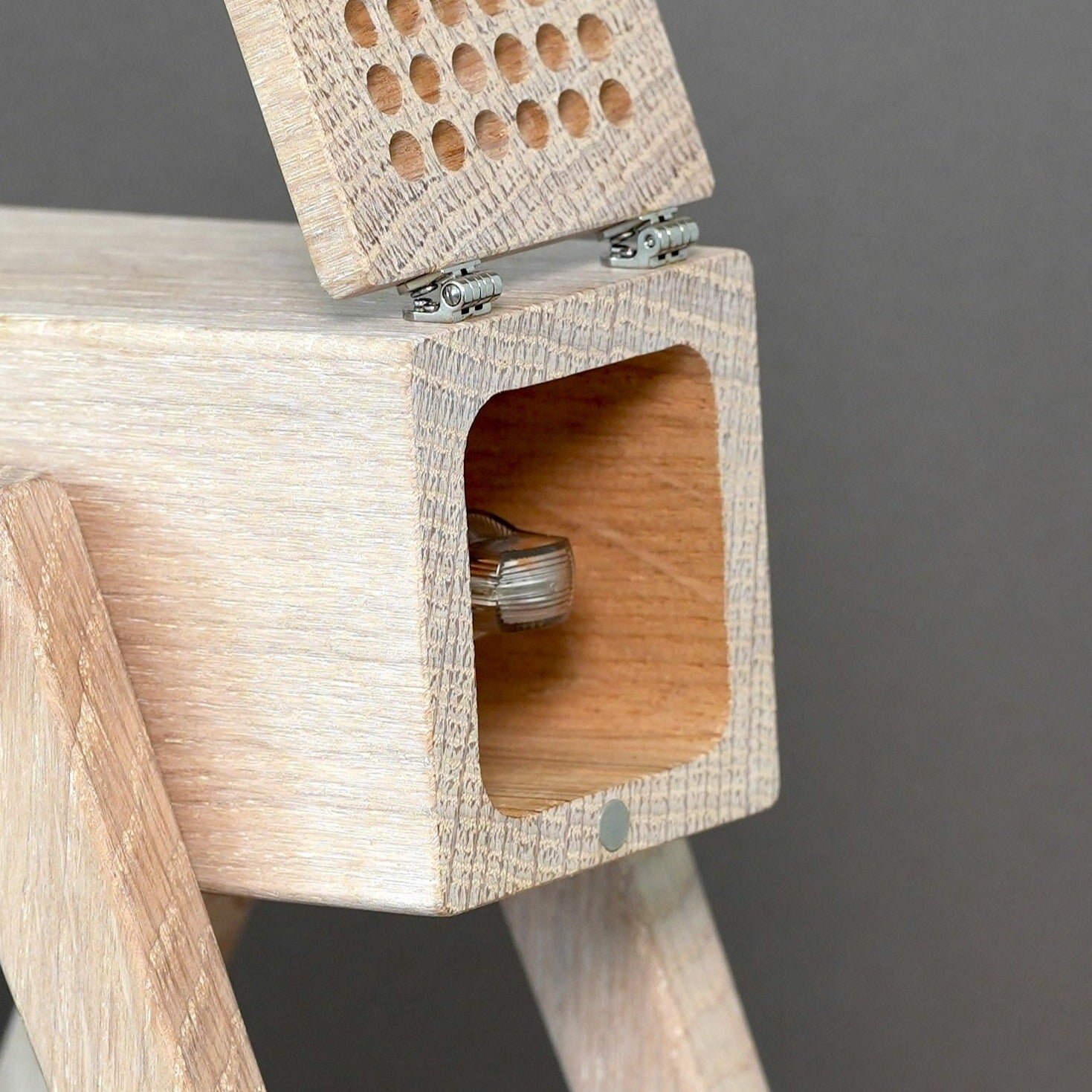 Bring mit der Geometric Tischleuchte in der Farbe "White Chocolate" Eleganz in Deine Räume. Die aus massivem Eichenholz gefertigte Lampe bietet dank der perforierten Klappe nicht nur funktionales Spotlicht, sondern auch stimmungsvolle Ambientebeleuchtung. Lass Dich von ihrem handgeölten Finish verzaubern.